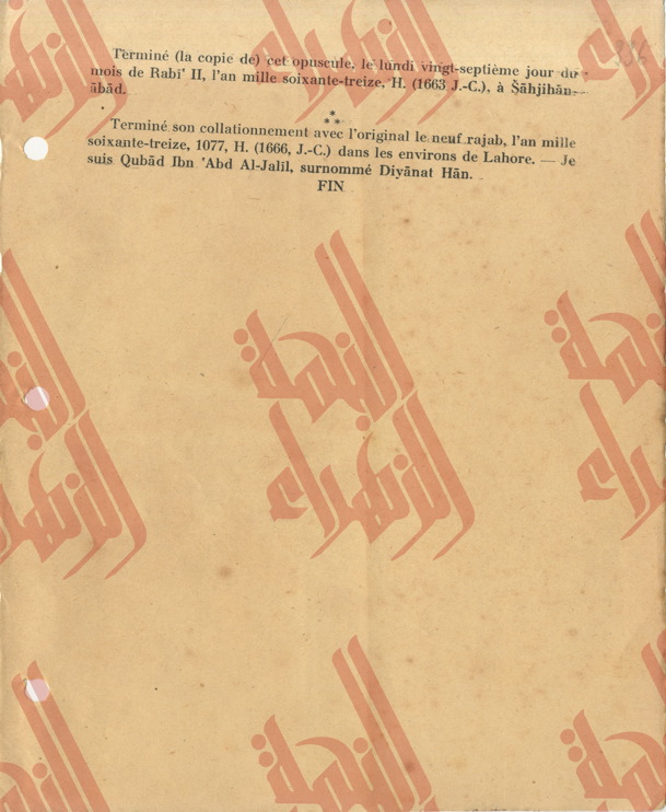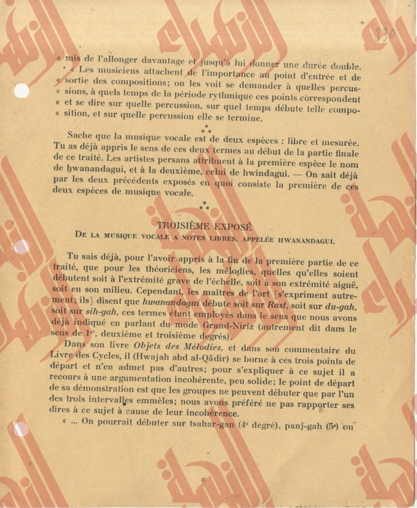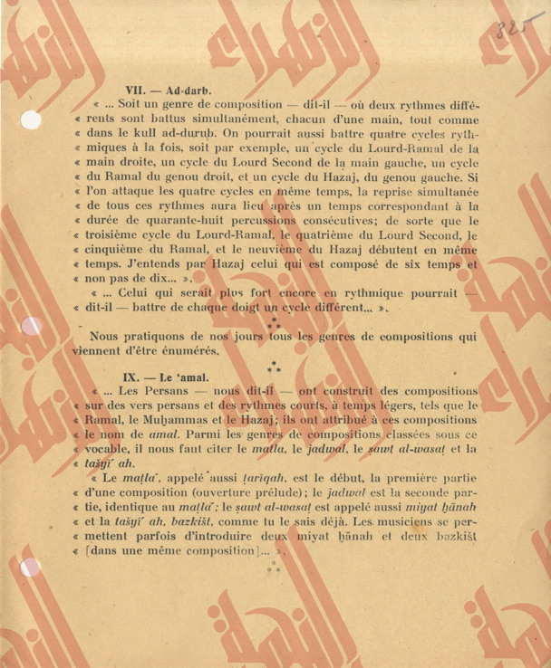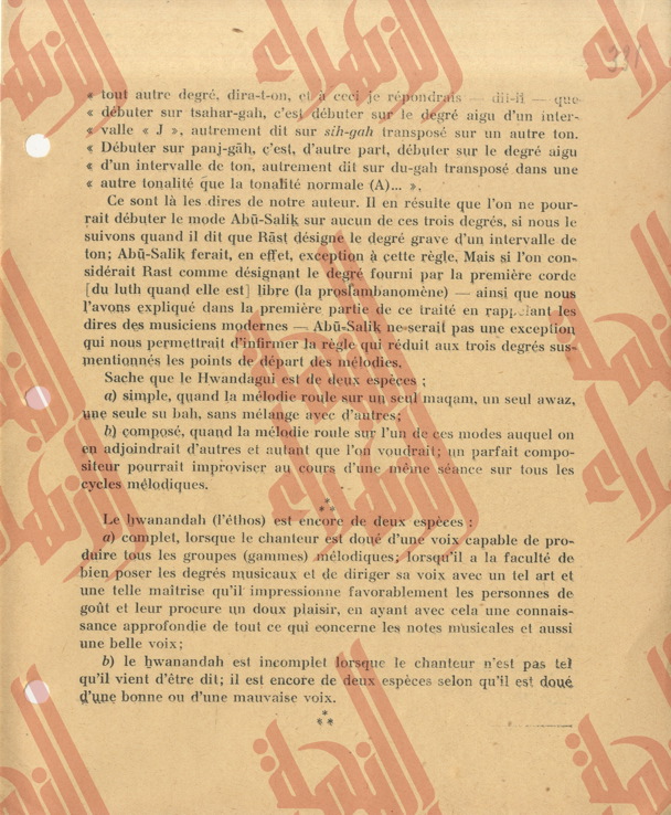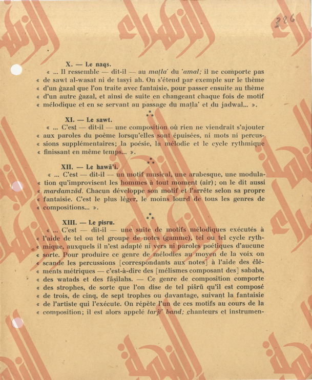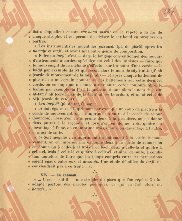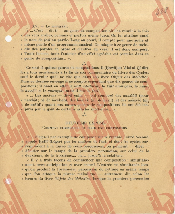 336 pages contenantes une partie du Tome IV du livre « la musique arabe » du Baron Rodolphe d’Erlanger relatif à l’étude de l’ouvrage « al-risalah al-fatḥeyah » de son auteur Muḥamed Ben ʿabdelḥamīd al-Lāḏikī.